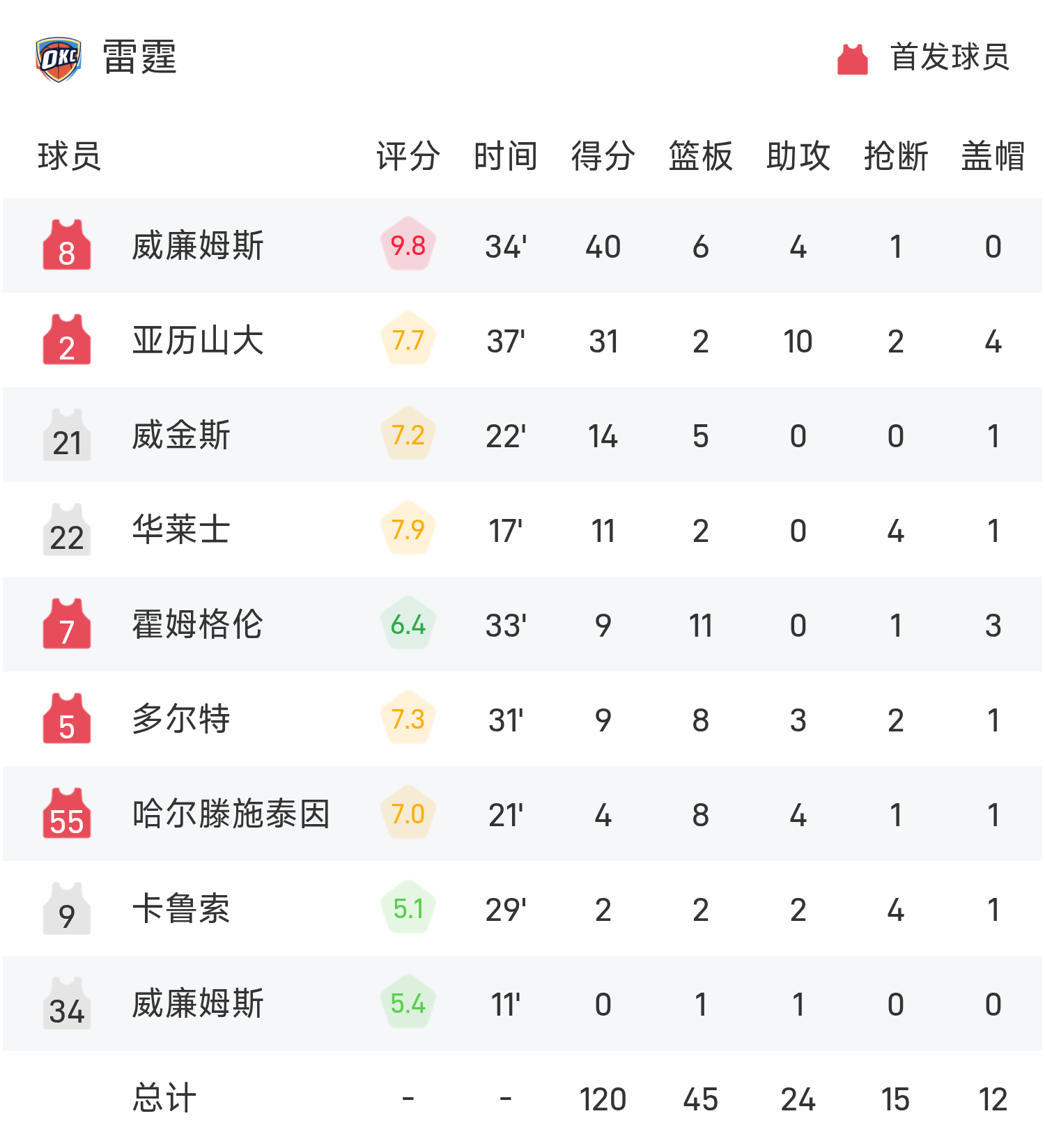 球员数据 查看更多