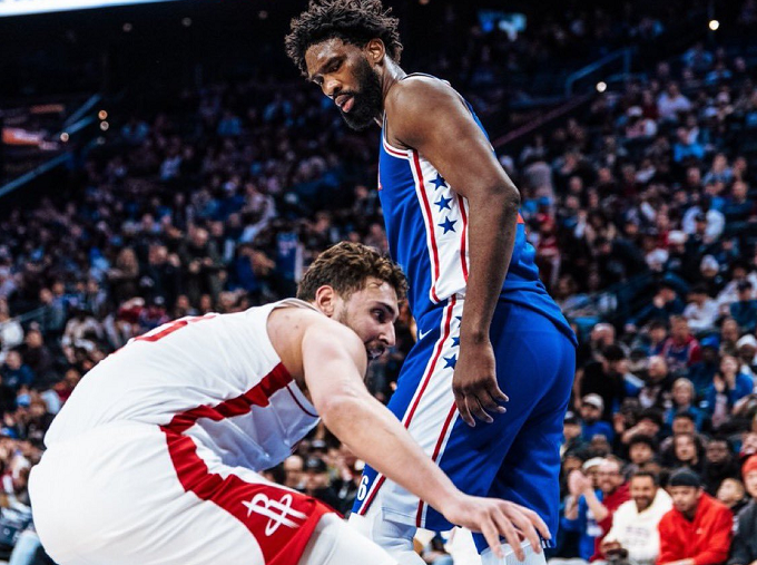 76人128-122火箭,大帝爆砍32分+15篮板+10助攻