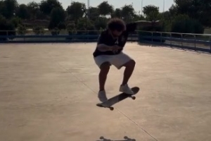 从视频可以看到,马塞洛玩滑板时秀了个跃起的动作。